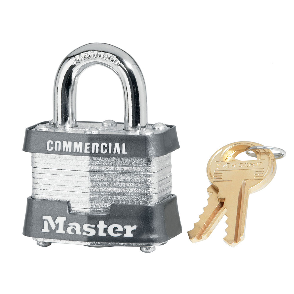 The Master Lock No. 31 Laminated Steel Padlock features a 40mm wide reinforced laminated steel lock body providing extra strength and a 19mm tall, 7mm diameter hardened steel shackle for excellent cut resistance. The ball bearing locking mechanism provide extra pry resistance making it ideal for industrial applications and the non-rekeyable, 5-pin W27 cylinder helps prevent picking.