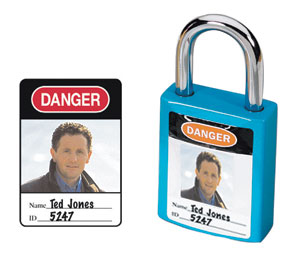 The Master Lock No. 6835-5701 Photo Identification Padlock Labels are designed for for aluminium padlocks S6835 / S1100 / 6835 / A1100. These 'Danger' labels include a picture of the employee responsible, sealed under a laminate coating.