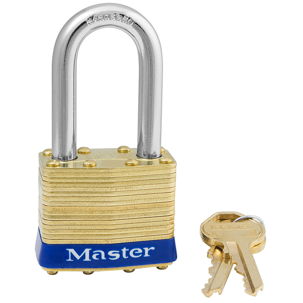 44mm wide laminated brass pin tumbler padlock with 38mm shackle, keyed alike