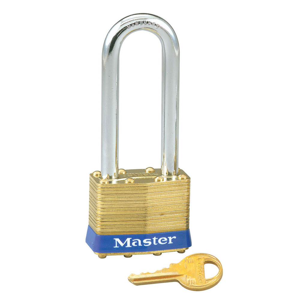 44mm wide laminated brass pin tumbler padlock with 64mm shackle, keyed alike