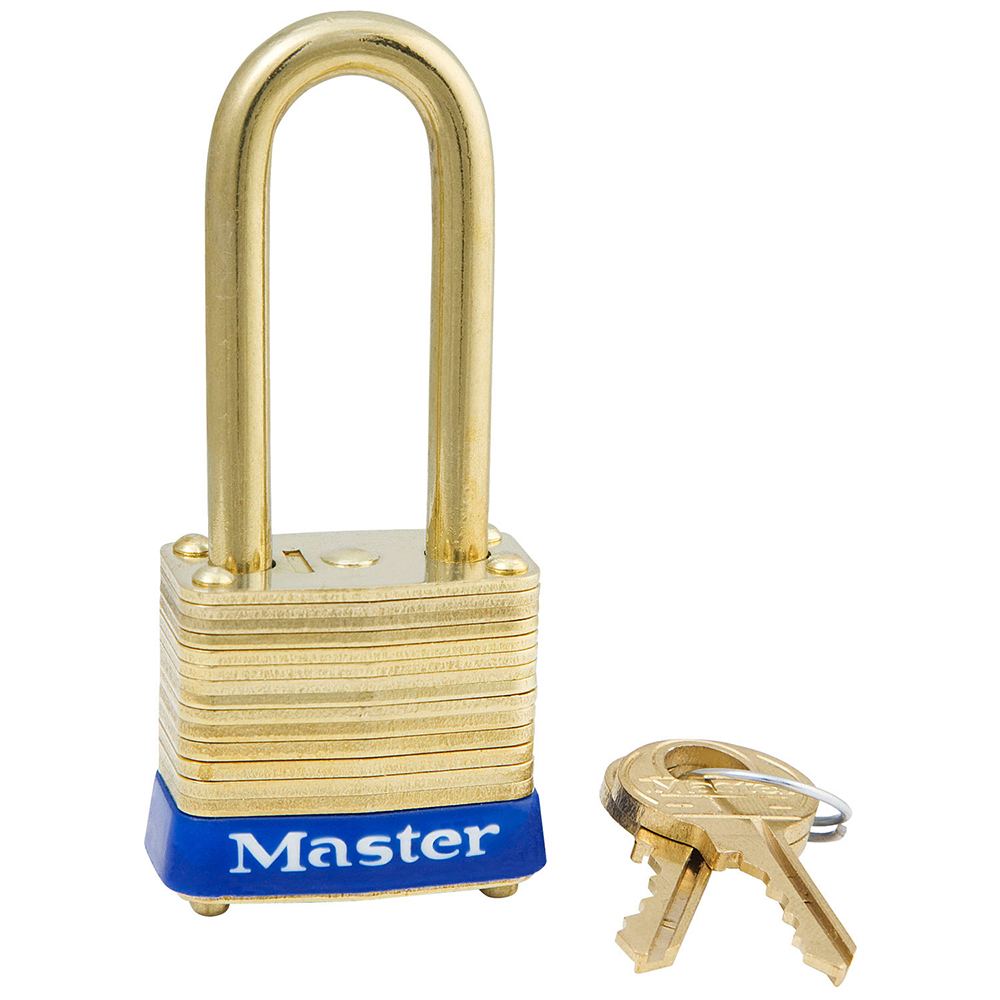The Master Lock No. 8KABLF Laminated Brass Padlock, Keyed Alike - multiple locks open with the same key - features a 29mm wide laminated brass body offering excellent corrosion resistance, making this lock ideal for marine and other harsh environments. The 38mm tall, 5mm diameter brass shackle provides superior corrosion resistance. The ball bearing locking mechanism provide extra pry resistance and the 4-pin W7 cylinder helps prevent picking.