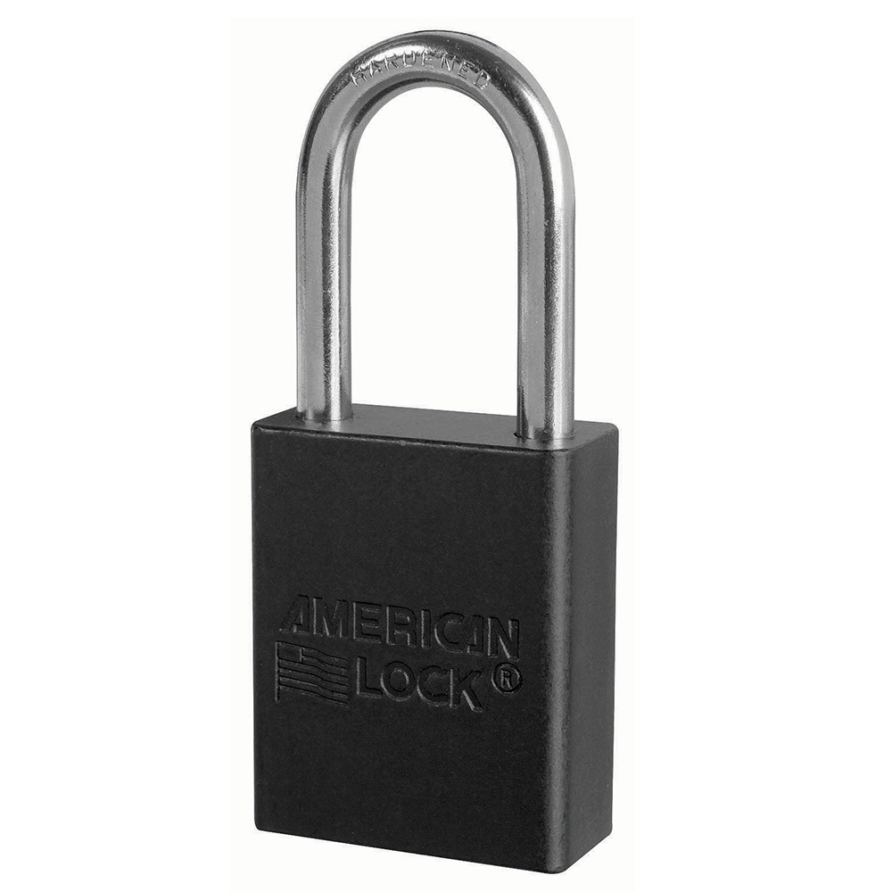 The American Lock No. A1166BLK Aluminum Padlock features a 38mm wide black anodized aluminum body with a 38mm tall, 6mm diameter chrome plated, boron alloy shackle for superior cut resistance. Featuring a 6-pin APTC14 cylinder, the anodized finish makes padlock suitable for lockout in food processing facilities and corrosion resistant finish ideal for tough environments.
