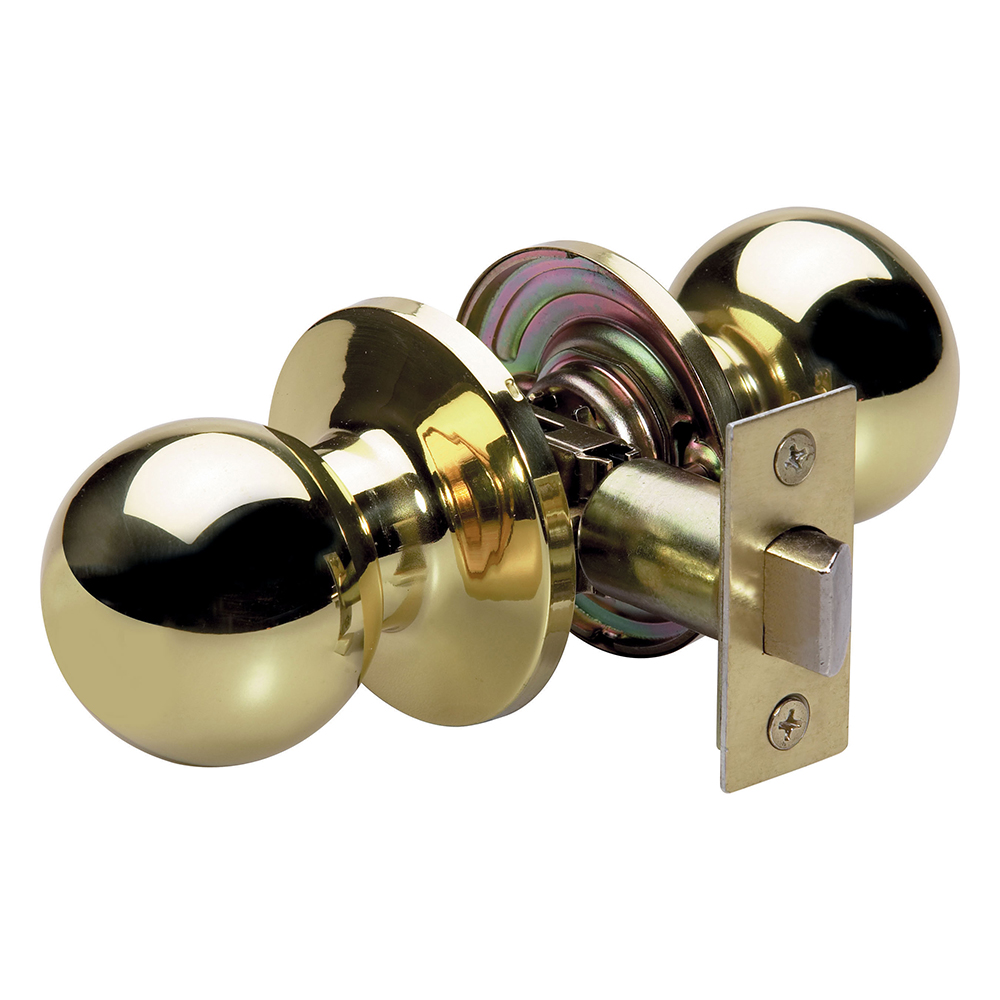 The Master Lock No. BAO0403 features a ball style knob with six-way adjustable latch to fit all doors with 60mm or 70mm backset, square, rounded corners, or drive-in. This knob offers ANSI GRADE 3 performance for interior non-locking applications. The polished brass finish provides a sleek appearance. The Limited Lifetime Warranty provides peace of mind from a brand you can trust.