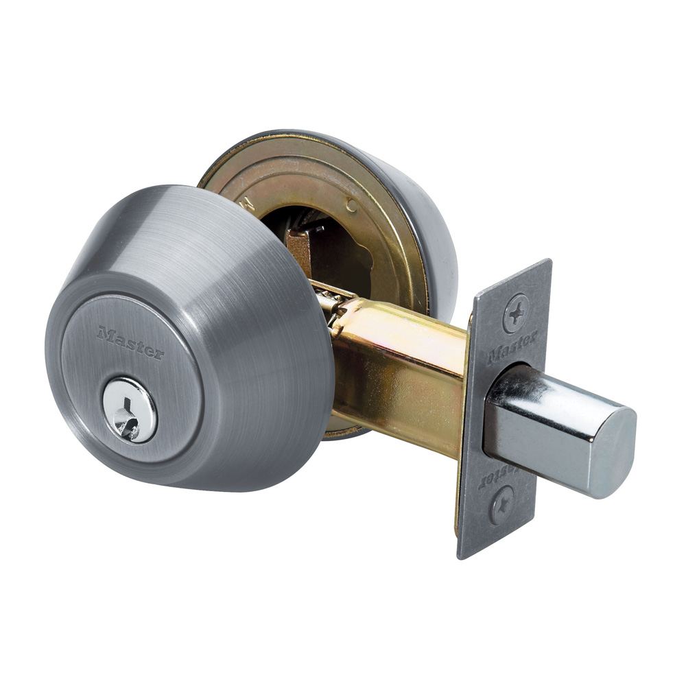 The Master Lock No. DS0715KA4W features a double cylinder deadbolt, with interior thumb turn. The deadbolt is four way adjustable for 60mm or 70mm backset, square, or rounded corners. The deadbolt offers ANSI GRADE 3 performance for exterior locking applications. The satin nickel finish provides a sleek appearance. Operates with WR3/5 cylinder. The Ten Year Limited Warranty provides peace of mind from a brand you can trust.