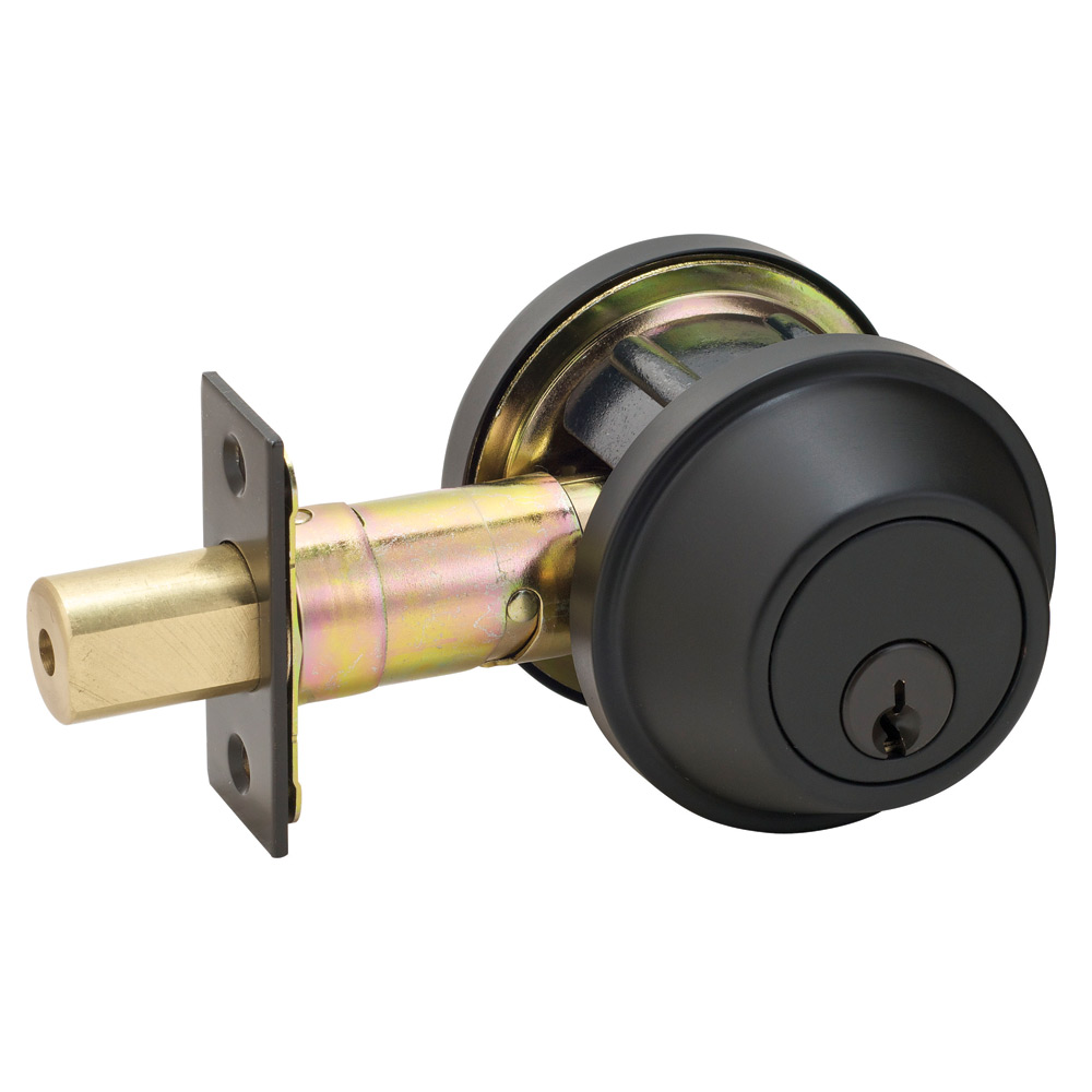 The Master Lock No. DSCHDD10B heavy duty, oil rubbed bronze double cylinder deadbolt features a bump resistant six pin cylinder, a 70mm fixed backset latch, a full 1in solid core throw bolt. This lever offers ANSI Grade 2 performance. The 10 Year Limited Lifetime Warranty provides peace of mind from a brand you can trust.