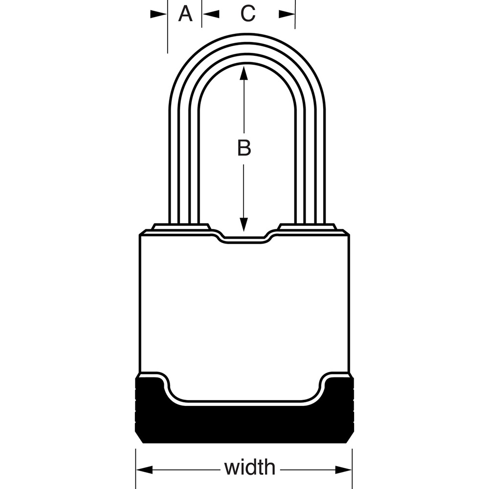 The Master Lock Excell® No. M115KALF Laminated Padlock, Keyed Alike - multiple locks open with the same key - features a 49mm wide laminated steel body for maximum strength and reliability, and is surrounded by stainless steel and zinc outer components for weather resistance. The Rust-Oleum®; Certified protection provides a Limited Lifetime Warranty against rusting on the lock body; and covered clock body, keyway, and shackle seals offer additional weather protection. The 8mm diameter octagonal shackle is 38mm long and made of Tough-Cut™; boron-carbide, 50% harder than hardened steel, offering maximum resistance to cutting and sawing. The 4-pin cylinder prevents picking and the dual locking ball bearings provide maximum resistance against prying and hammering. The Limited Lifetime Warranty provides peace of mind from a brand you can trust.