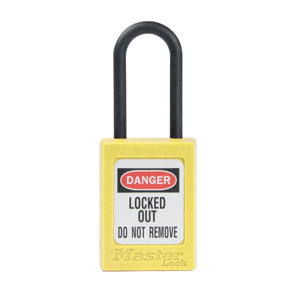 The Master Lock No. S32YLW Global Zenex™ Thermoplastic Snap Lock Safety Padlock features a 35mm wide thermoplastic yellow body and a 38mm tall, 4,76mm diameter marine grade 316 stainless steel shackle for superior corrosion resistance. Thermoplastic body withstands chemicals and extreme temperatures while being lightweight. Designed specifically for safety lockout/tagout applications, the high-security reserved for safety 6-pin tumbler cylinder complies with the "one employee, one lock, one key" best practice. Write-on, multi-language padlock labels are included for on-site customization.