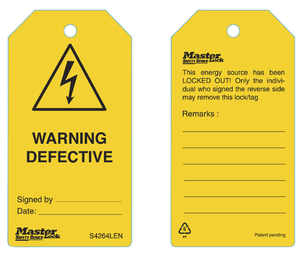 The Master Lock Model No. S4264LEN Safety Tag features a process that fuses graphics into rugged industrial-grade polypropylene blended with a metal additive; ideal for use in food processing and pharmaceutical facilities. The longest lasting tags available, the Guardian Extreme tags stand up to wash downs, humidity and extreme temperatures. The longest lasting signs available, Guardian Extreme signs stand up to wash downs, humidity and extreme temperatures.