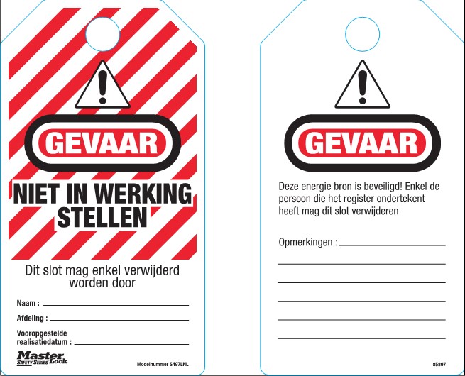 Dutch lock out tags - danger - do not operate (each bag contains 12)