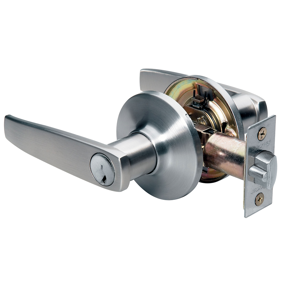 The Master Lock No. SLL0105 features a straight style lever with six-way adjustable latch to fit all doors with 60mm or 70mm backset, square, rounded corners, or drive-in. This knob offers ANSI GRADE 3 performance for exterior locking applications. The satin nickel finish provides a sleek appearance. The Ten Year Limited Warranty provides peace of mind from a brand you can trust.