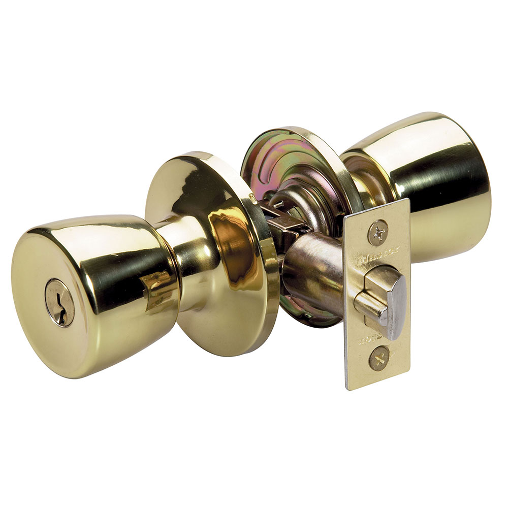 The Master Lock No. TUMOB103 features a tulip style knob with six-way adjustable latch to fit all doors with 60mm or 70mm backset, square, rounded corners, or drive-in. This deadbolt offers ANSI GRADE 3 performance for exterior mobile home locking applications. The polished brass finish provides a sleek appearance. The Ten Year Limited Warranty provides peace of mind from a brand you can trust.