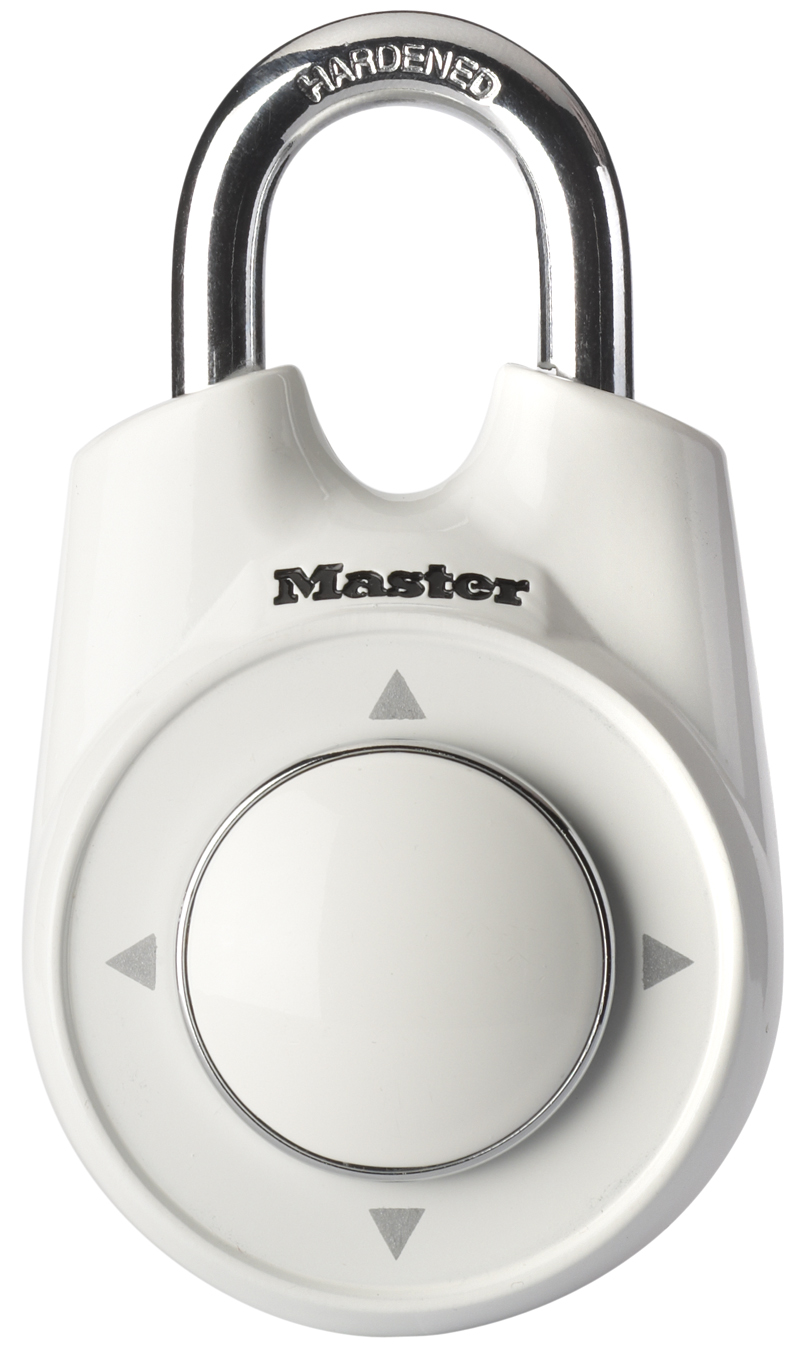 The Master Lock No. 1500iEURDWHI One™ Directional Set-Your-Own Combination Padlock features a 55mm wide metal body for durability with a white lacquer painted finish. The 7mm diameter shackle is 27mm long and made of hardened steel, offering extra resistance to cutting and sawing. The patented up/down/left/right directional movement technology is faster, easier and more secure than a standard combination lock. The locking mechanism features anti-shim technology, offering maximum security. The Limited Lifetime Warranty provides peace of mind from a brand you can trust.