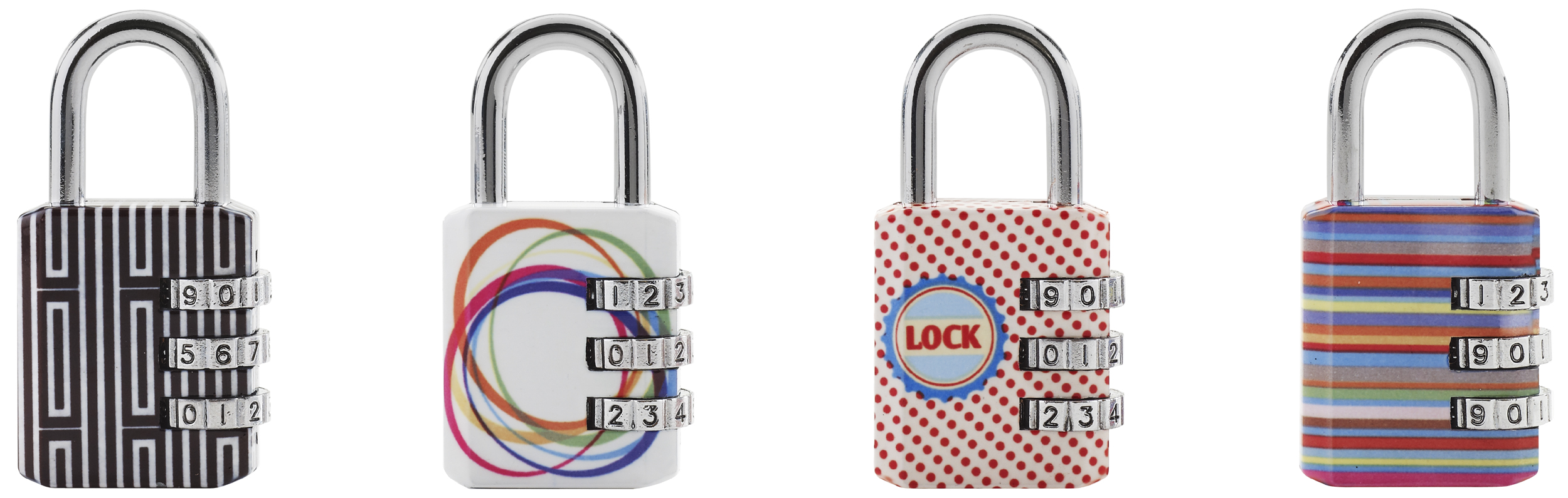 30mm wide set-your-own combination padlock; printed patterns