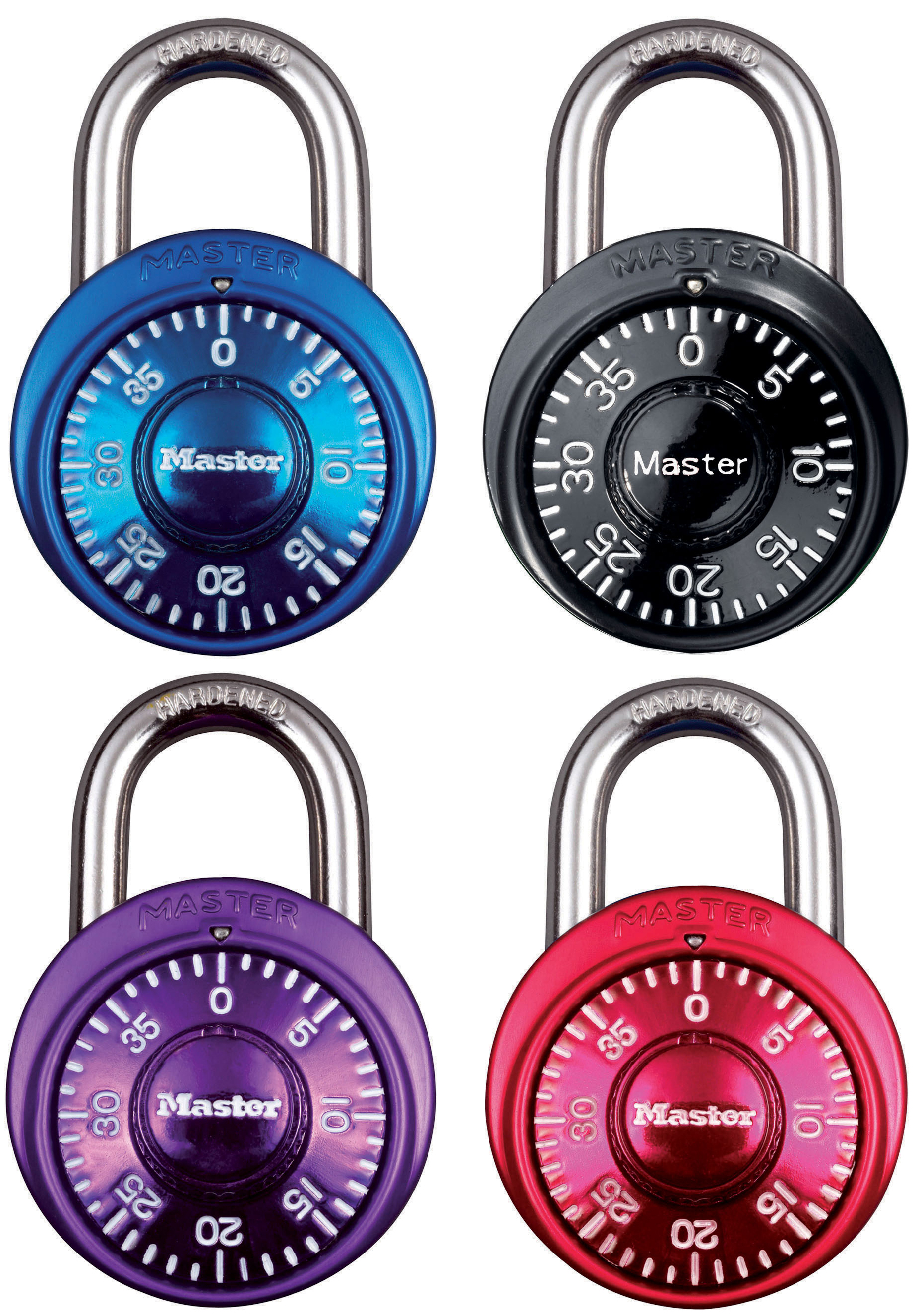 The Master Lock No. 1533EURD Padlock with Preset Combination features a 38mm wide stainless steel body for durability, with an anodized aluminum finish. The 6mm diameter shackle is 18mm long and made of hardened steel, offering extra resistance to cutting and sawing. The 3-digit combination offers keyless convenience. The bright metallic colours simplify locker identification. The Limited Lifetime Warranty provides peace of mind from a brand you can trust.