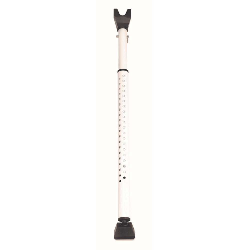 The Master Lock No. 265EURD Security Door Bar is made of rugged steel construction to resists forced entry through doors and sliding patio doors. The bar adjusts from 70cm - 112 cm for application flexibility. The pivoting ball joint assures full contact with floor, and padded foot provides sure grip without scratching. The Limited Lifetime Warranty provides peace of mind from a brand you can trust.