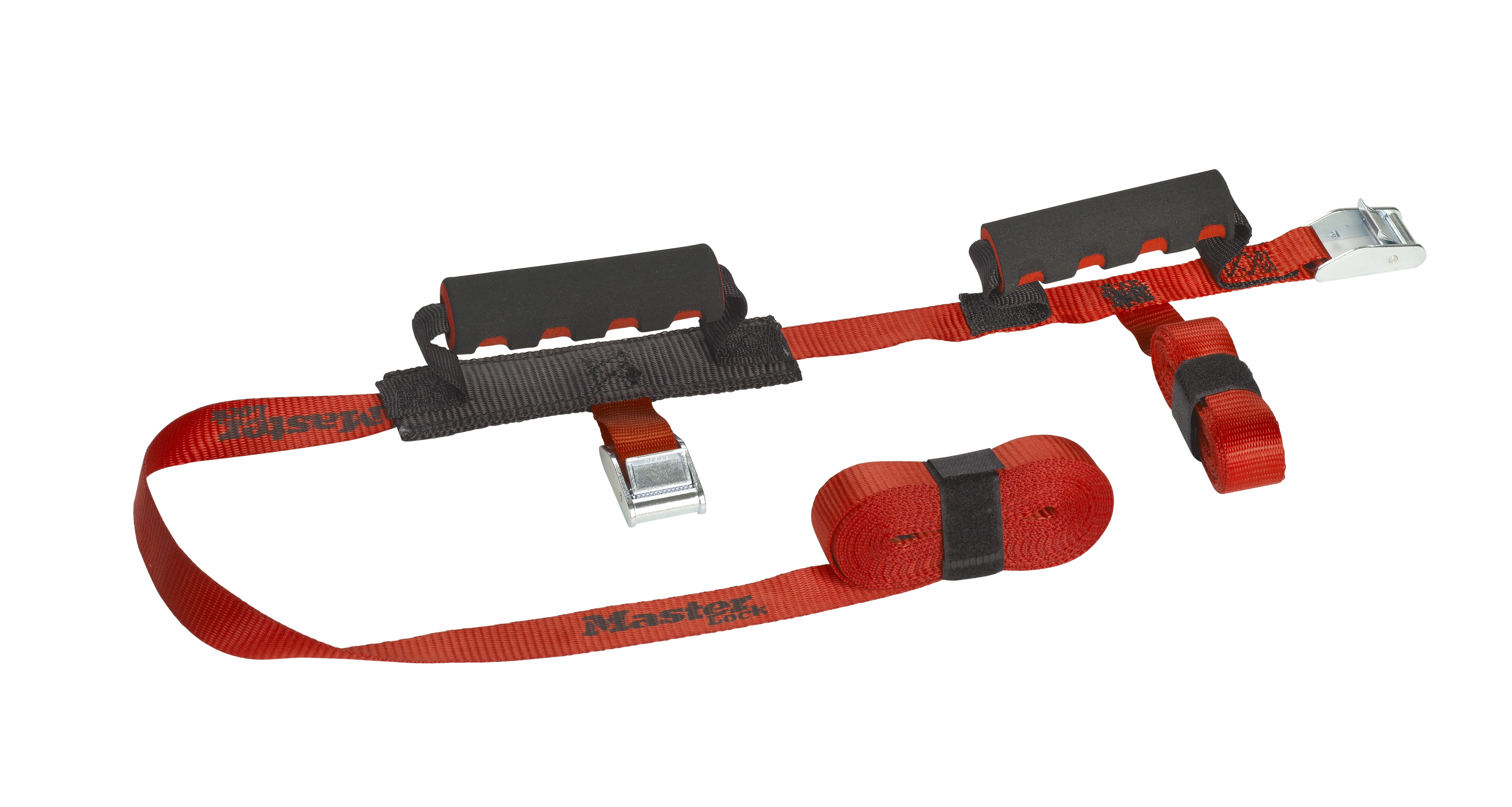 The Master Lock Carry Strap No. 3126EURDAT features a 2,50m long x 25mm and 5,5m long x 25mm crossed straps with zamac buckles. Ideal to carry cartons or pieces of furniture, the metal cam buckle enables to adjust the length of the strap. The two handles with foam finish make the use more comfortable.