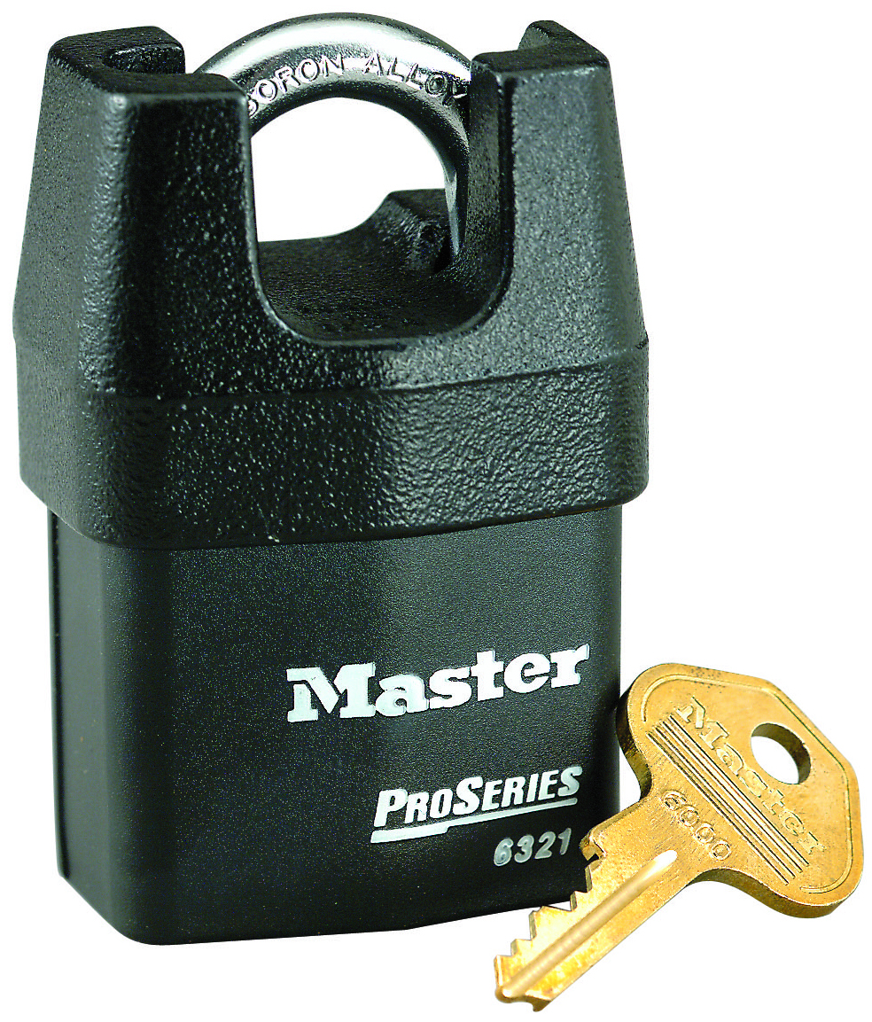 The Master Lock No. 6321EURD ProSeries® Shrouded Padlock features a 54mm heavy steel body that withstands physical attack and a 18mm tall, 8mm diameter hardened boron alloy shackle for superior cut resistance. Ideal for transportation and industrial applications, the iron shroud protects the shackle from bolt cutters and a dual ball locking mechanism resists pulling and prying. The high security 6-pin cylinder with spool pins is virtually impossible to pick. The Limited Lifetime Warranty provides peace of mind from a brand you can trust.