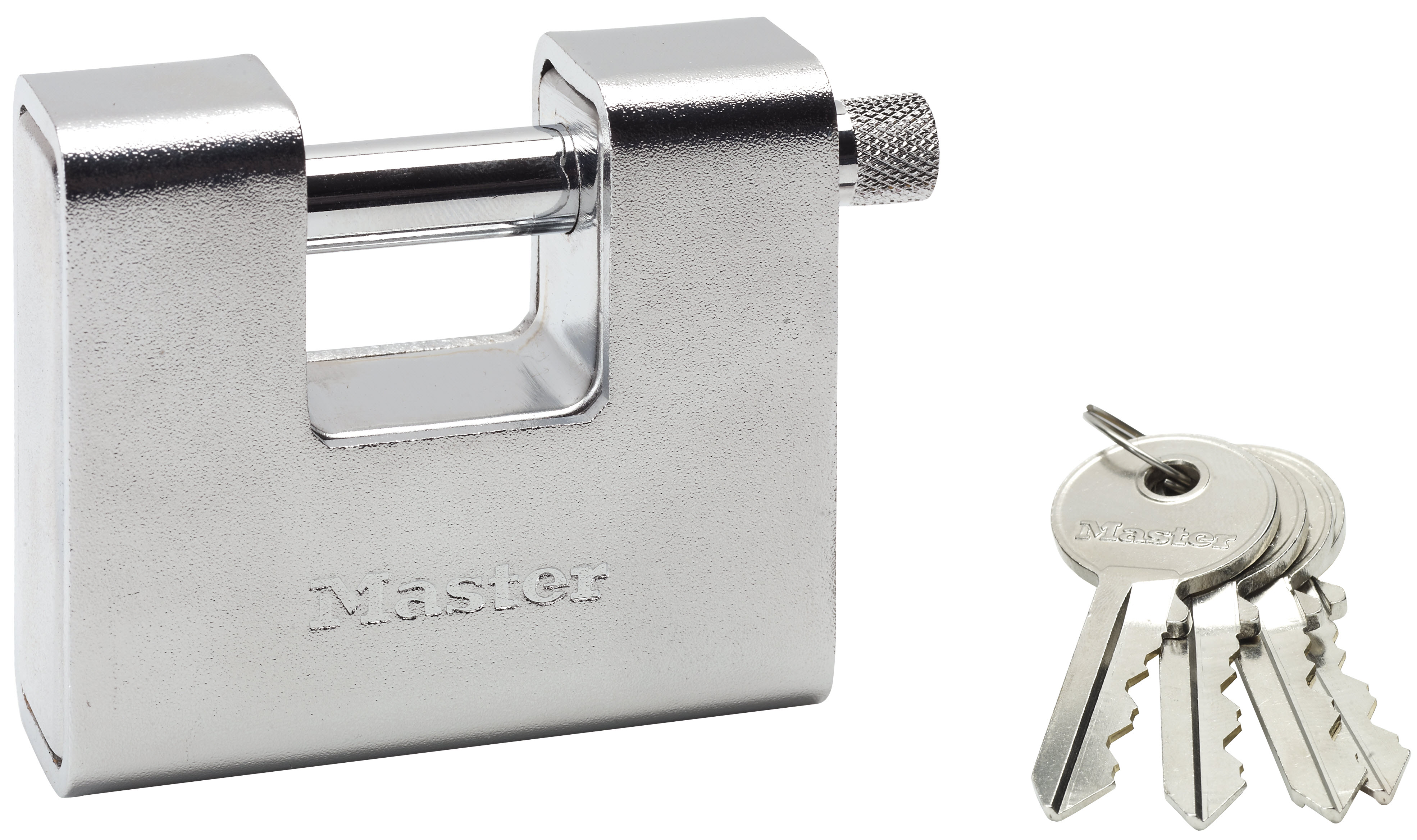 The Master Lock No. 680EURD Armoured Padlock features a 80mm wide zinc body for strength and weather resistance, and is surrounded by hardened steel for maximum strength and reliability. The fully shrouded design minimizes shackle exposure and protects against bolt cutter attacks. The 11mm diameter shackle is 14mm long and made of hardened steel, offering strong resistance to cutting and sawing. The 5-pin cylinder prevents picking and the dual locking levers prevent prying and hammering. The padlock comes with 4 keys for convenience. The Limited Lifetime Warranty provides peace of mind from a brand you can trust.