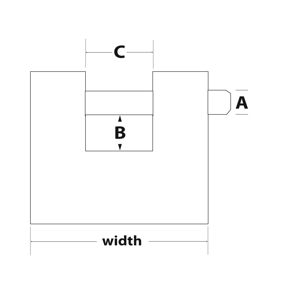 80mm wide rectangular hardened steel armoured body padlock; shrouded shackle