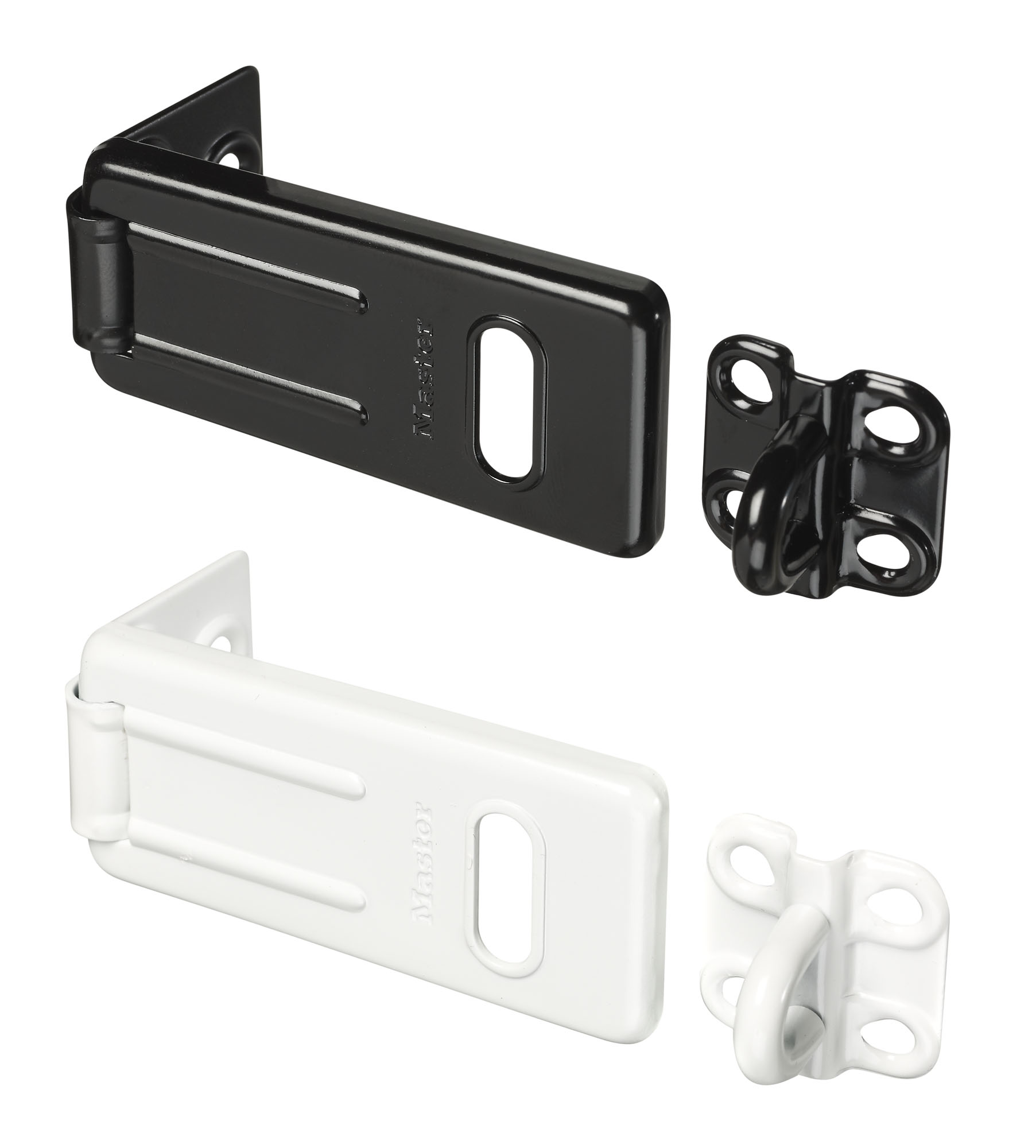 The Master Lock No. 702EURDWB Hasp features a 64mm long hard wrought steel body. The zinc plated hardened steel hasp provides added strength and weatherability. The hardened steel staple and locking eye resist cutting and sawing. The ribbed hasp plate offers extra strength, and hardened steel locking eye provides strong cut resistance. The Limited Lifetime Warranty provides peace of mind from a brand you can trust.