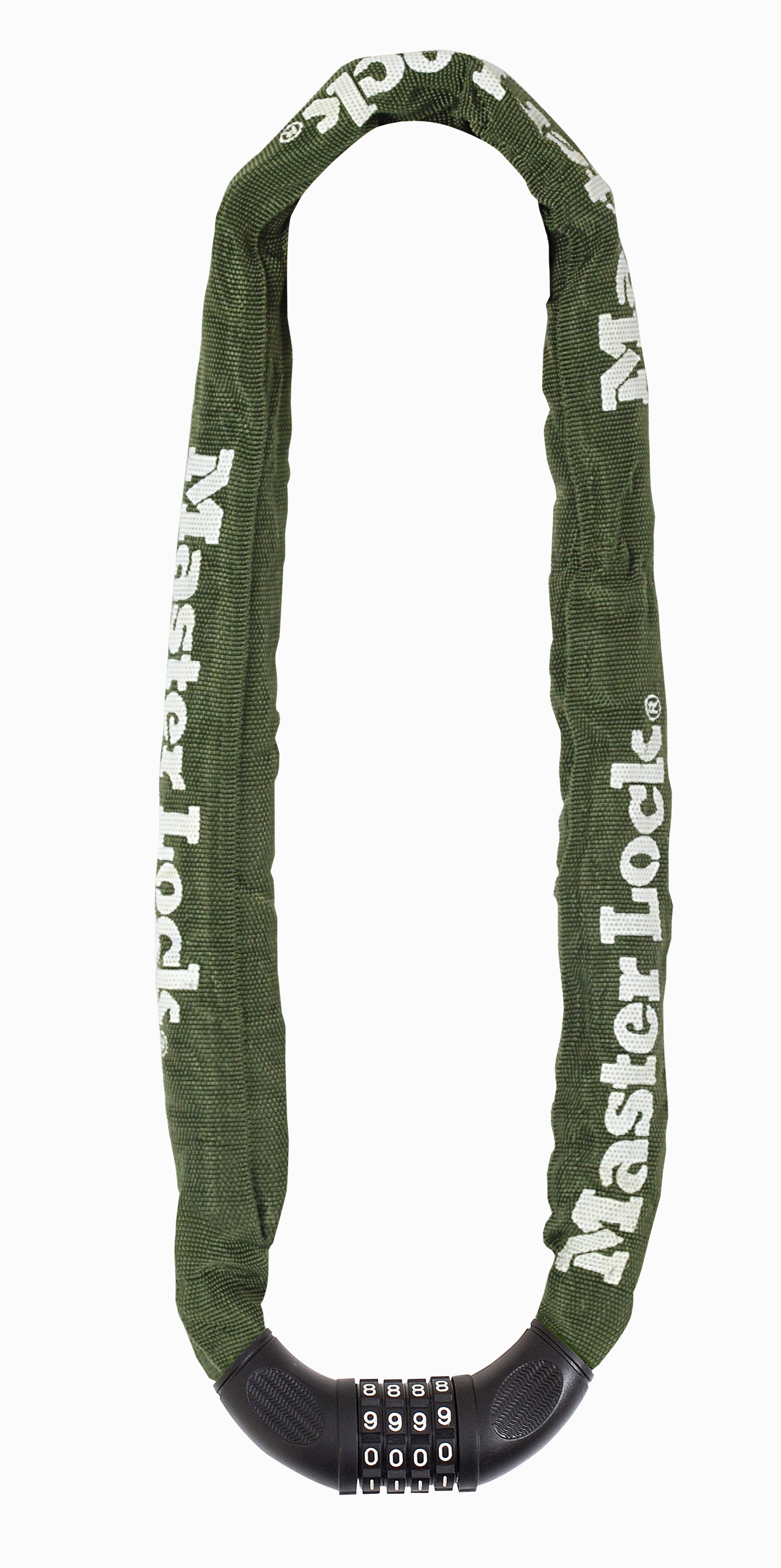 The Master Lock No. 8027EURD Chain Lock is 1m long and features 8mm diameter hardened steel links, offering extra resistance to cutting and sawing. The green nylon sleeve provides additional protection against scratches. The 4 dials combination security offers keyless convenience. The Limited Lifetime Warranty provides peace of mind from a brand you can trust.