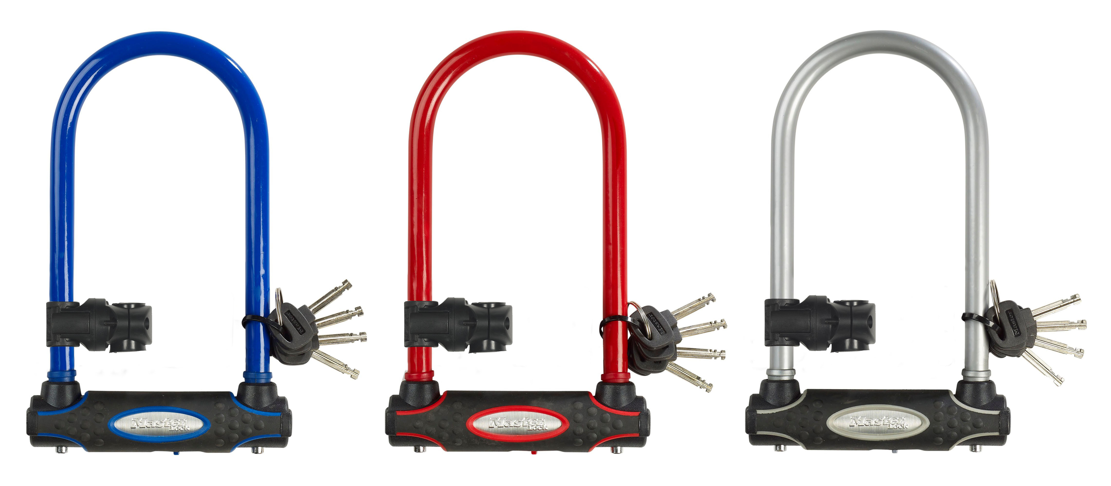 The Master Lock No. 8195EURDPROCOL U-Lock features an 11cm wide hardened steel body for maximum strength and reliability. The 13mm diameter double locking shackle is 21cm long and made of hardened steel, offering extra resistance to prying, cutting and sawing. The disc key cylinder prevents picking. The bright colours simplify identification. The Limited Lifetime Warranty provides peace of mind from a brand you can trust.