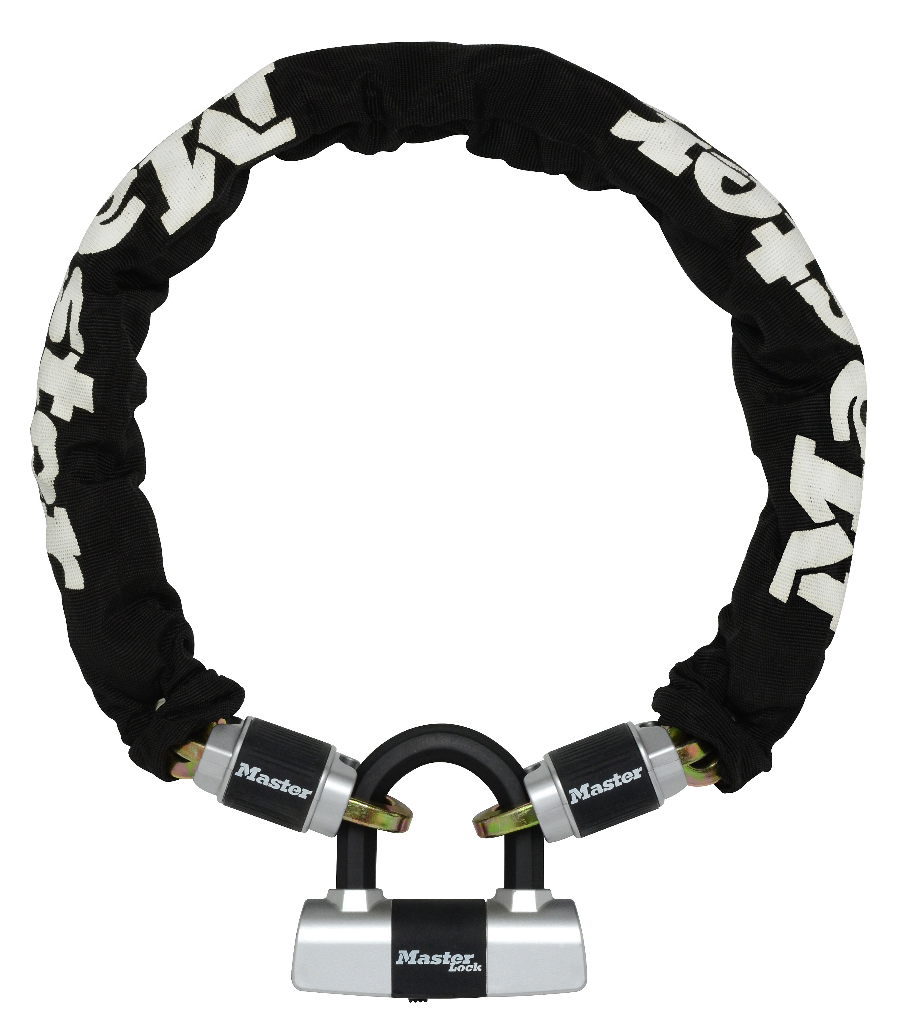 The Master Lock No. 8239EURDPRO Chain with Mini U Lock is 1m long and features 10mm diameter square hardened steel links, offering resistance to cutting and sawing. The nylon sleeve provides additional protection for equipment. The mini U lock features a hardened steel body for maximum strength and reliability. The 16mm diameter octagonal shackle is made of hardened steel for maximum resistance to cutting and sawing. The high security disc cylinder prevents picking and the dual locking levers provide resistance against prying and hammering. The lock protection offers a weather proof. The Limited Lifetime Warranty provides peace of mind from a brand you can trust.