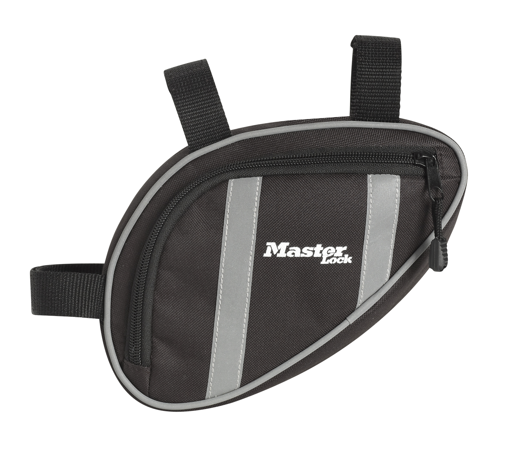 The Master Lock No. 8242EURDPRO Storage Pouch accepts Street Cuff® locks, cables and chains. The 3 straps offer easiness to fix to the bike frame. The reflective bands offer additional visibility when riding at night.