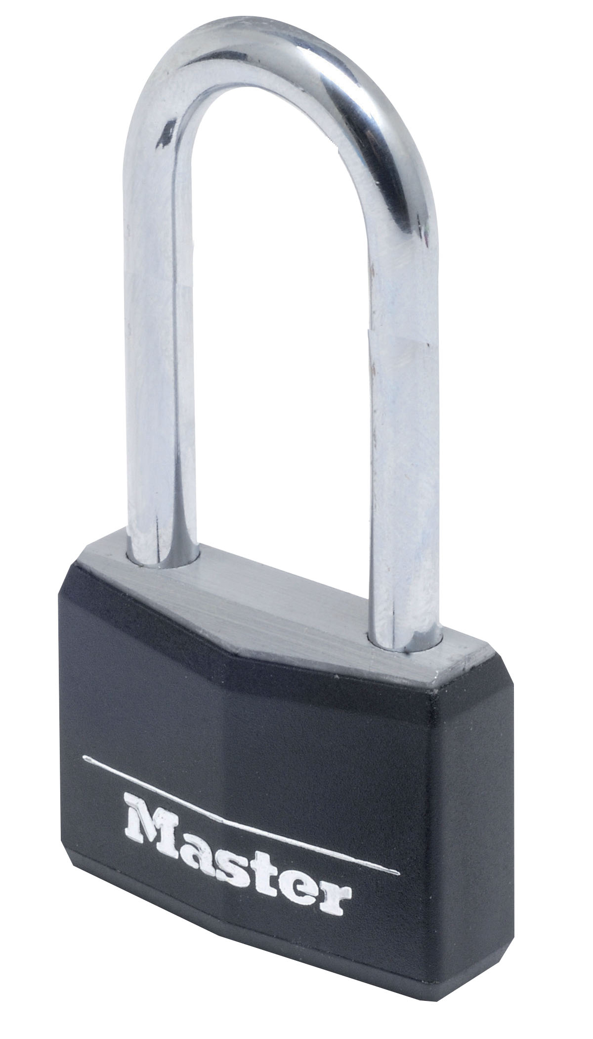 The Master Lock No. 9140EURDBLKLH Black Covered Solid Aluminum Padlock features a 40mm wide covered solid aluminum lock body that is durable and resists corrosion. The 6mm diameter shackle is 51mm long and made of hardened steel, offering extra resistance to cutting and sawing. The 4-pin cylinder prevents picking and the dual locking levers provide resistance against prying and hammering. The Limited Lifetime Warranty provides peace of mind from a brand you can trust.