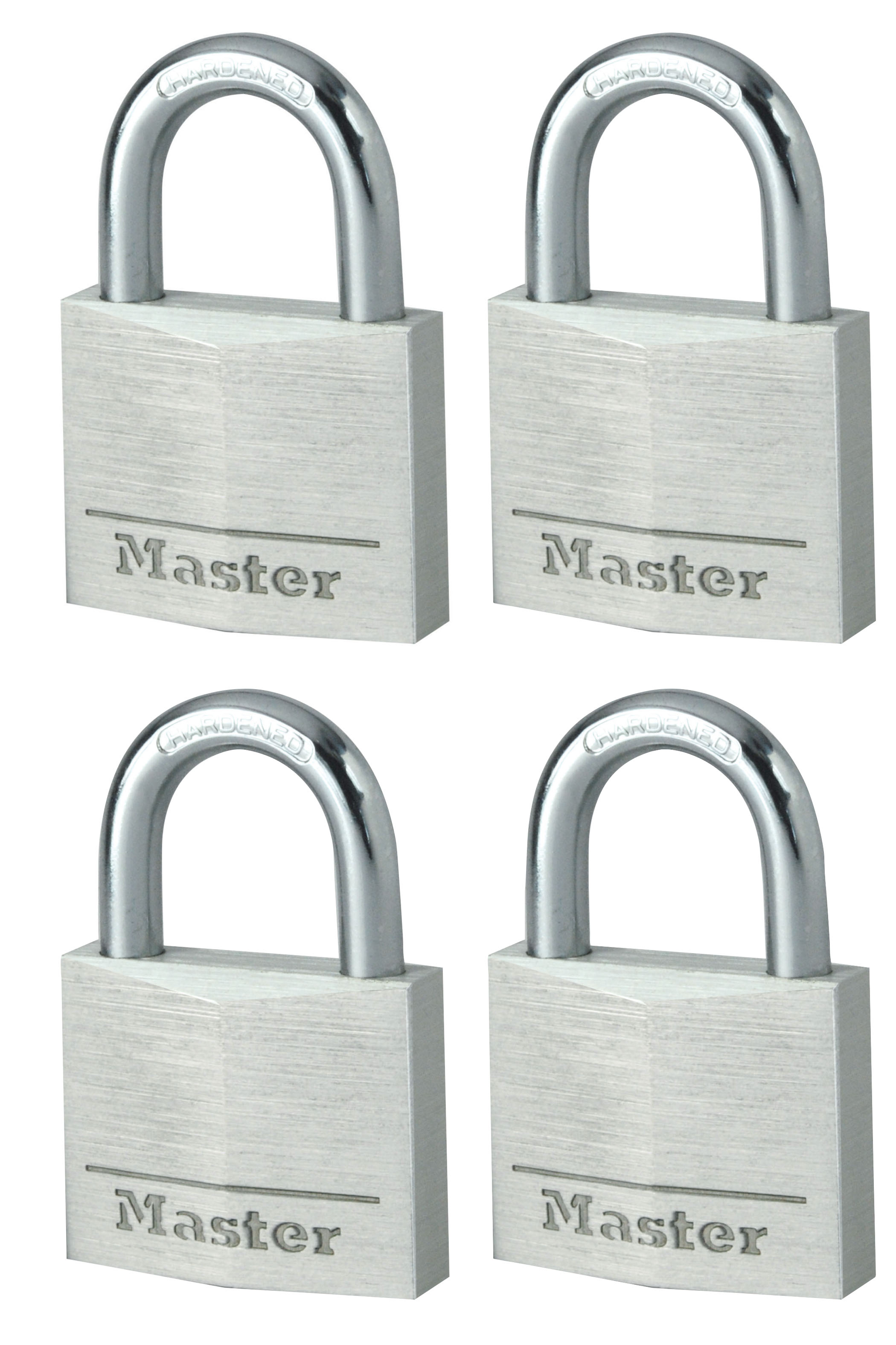 The Master Lock No. 9140EURQNOP Solid Aluminum Padlock features a 40mm wide solid aluminum lock body that is durable and resists corrosion. The 6mm diameter shackle is 21mm long and made of hardened steel, offering extra resistance to cutting and sawing. The 4-pin cylinder prevents picking and the dual locking levers provide resistance against prying and hammering. The Limited Lifetime Warranty provides peace of mind from a brand you can trust.