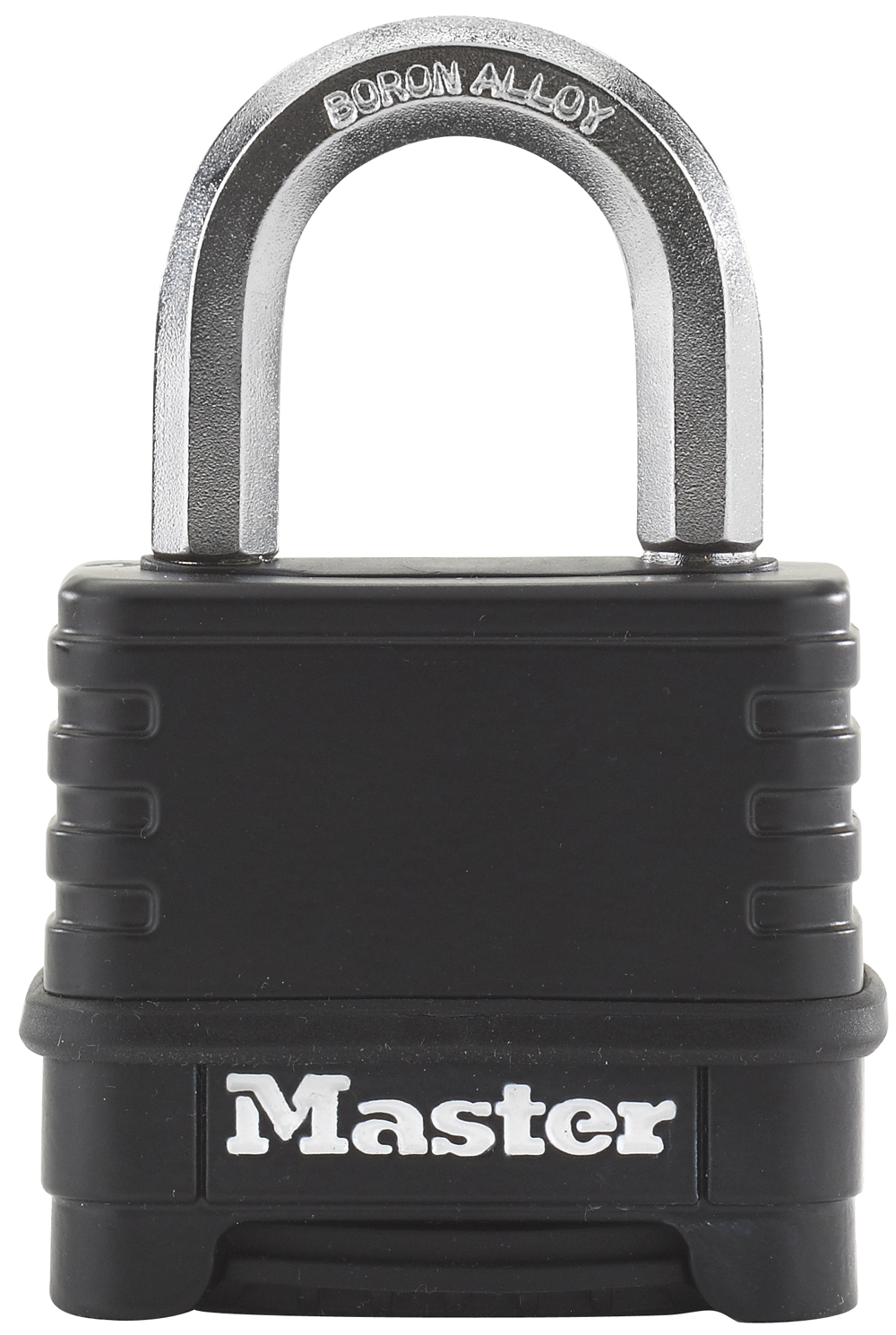 The Master Lock Excell® No. M178EURD Solid Body Padlock features a 57mm wide zinc body for strength and reliability. The 9mm diameter octagonal shackle is 28mm long and made of Tough-Cut™ boron-carbide, 50% harder than hardened steel, offering maximum resistance to cutting and sawing. The roller pin cylinder provides maximum pick and pry resistance. The hinged dial cover and shackle seal offers superior weather protection, and reinforced body bumper protects against scratches. The lock includes Set-Your-Own combination convenience, without the need for a reset tool. The Limited Lifetime Warranty provides peace of mind from a brand you can trust.
