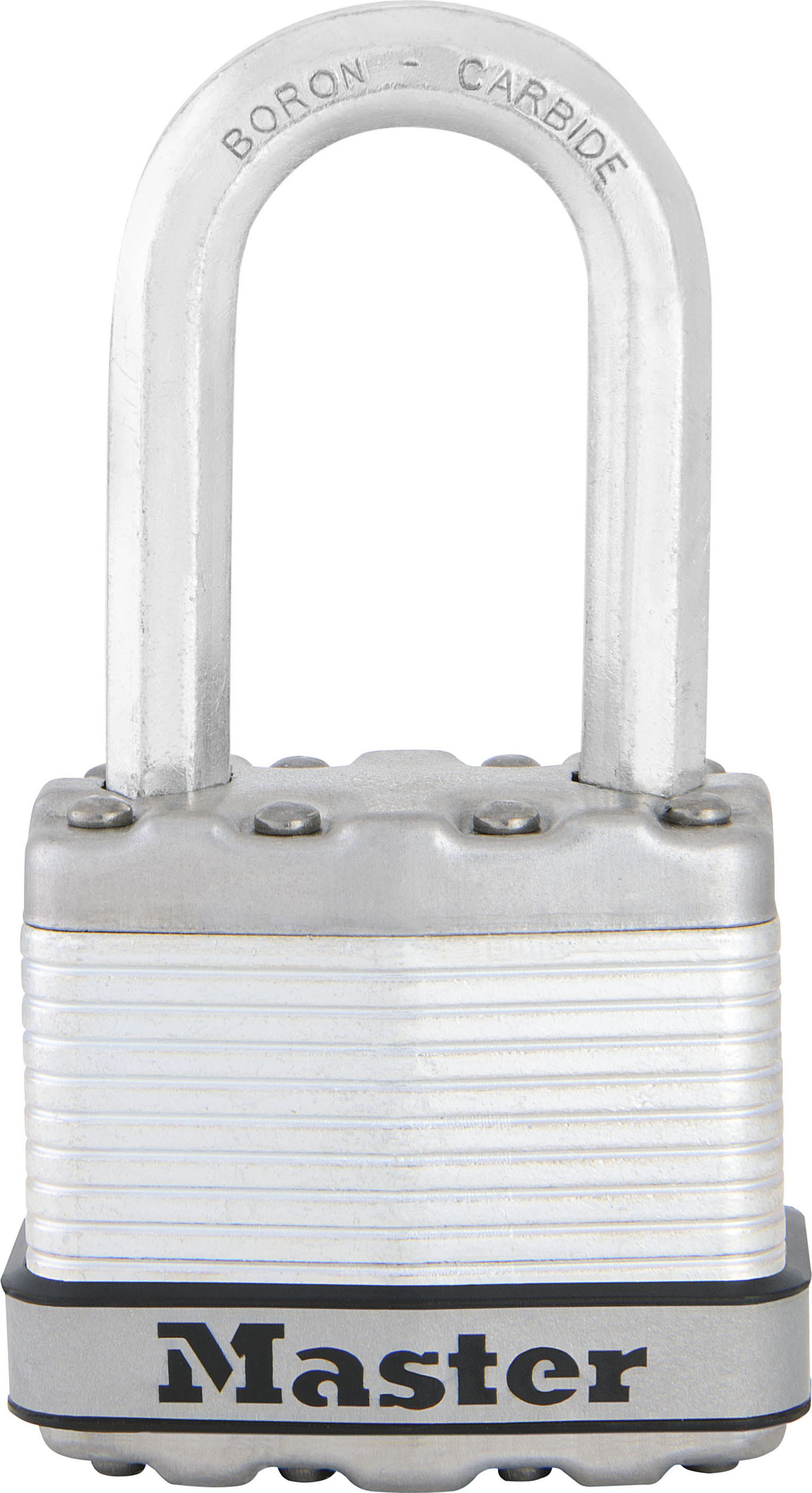 The Master Lock Excell® No. M1EURDLF Laminated Padlock features a 45mm wide laminated steel body for maximum strength and reliability, and is surrounded by stainless steel and zinc outer components for weather resistance. The 8mm diameter octagonal shackle is 38mm long and made of Tough-Cut™ boron-carbide, 50% harder than hardened steel, offering maximum resistance to cutting and sawing. The 4-pin cylinder prevents picking and the dual locking ball bearings provide maximum resistance against prying and hammering. The Limited Lifetime Warranty provides peace of mind from a brand you can trust.