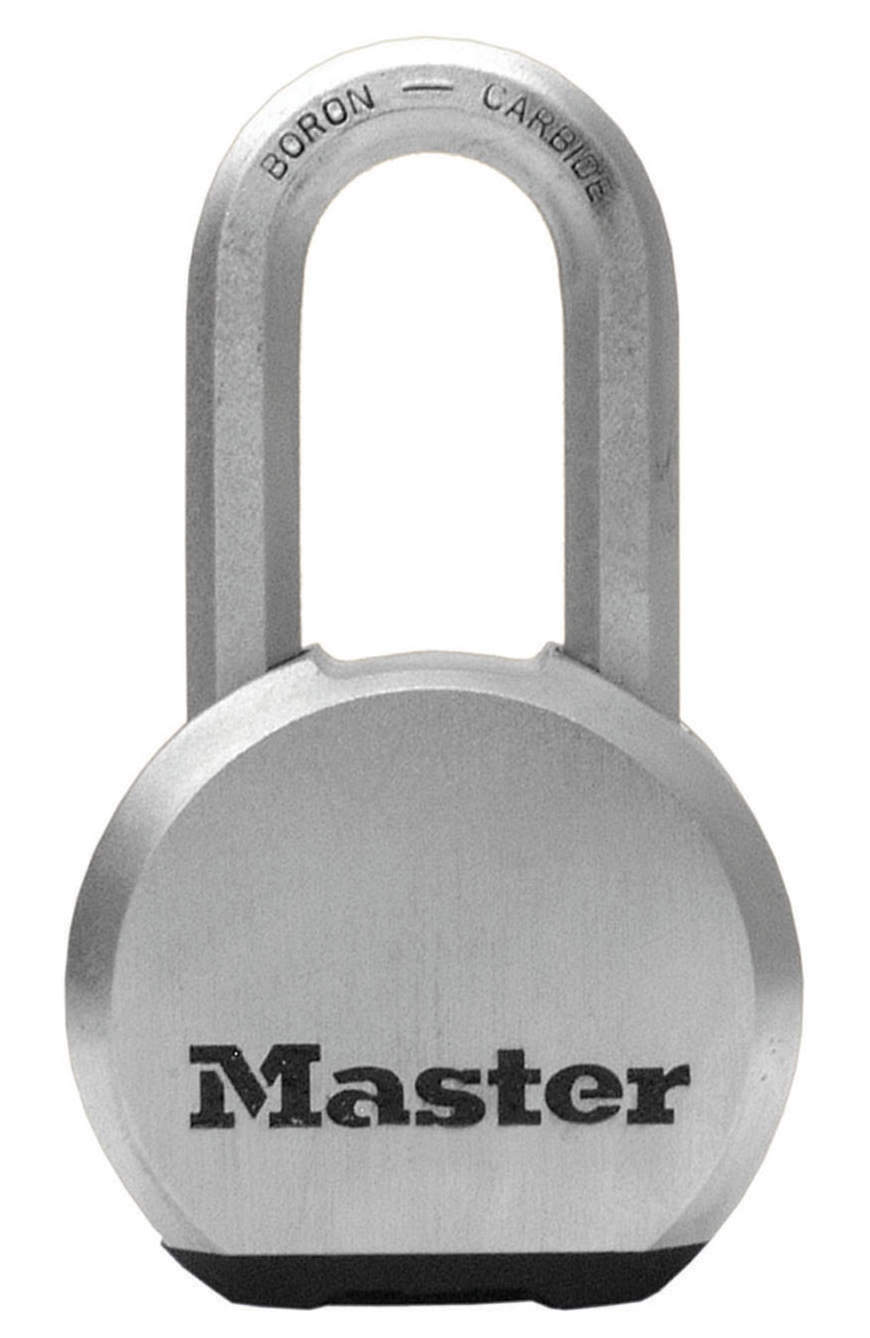 The Master Lock Excell® No. M930EURDLH Solid Body Padlock features a 64mm wide solid steel body for maximum strength and reliability. The 10mm diameter octagonal shackle is 51mm long and made of Tough-Cut™ boron-carbide, 50% harder than hardened steel, offering maximum resistance to cutting and sawing. The 5-pin cylinder prevents picking and the dual locking ball bearings provide maximum resistance against prying and hammering. The covered keyway offers maximum weather protection, and reinforced body bumper protects against scratches. The Limited Lifetime Warranty provides peace of mind from a brand you can trust.